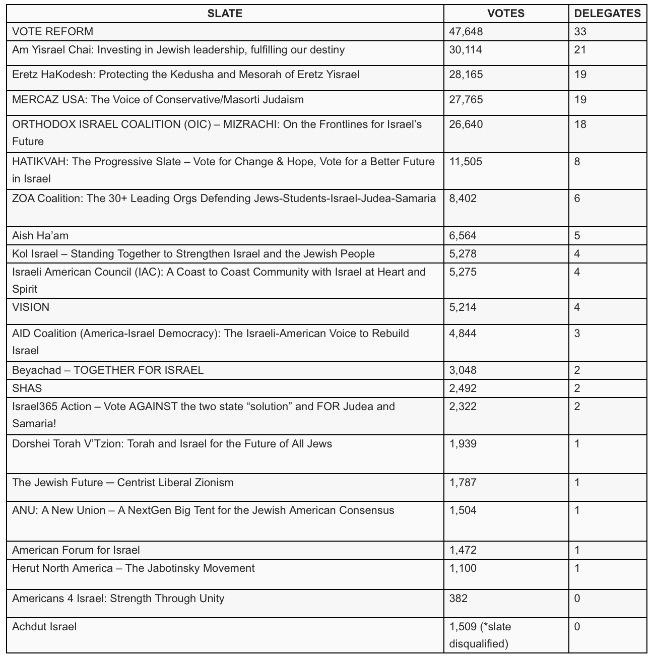 While it seemed like the entire Jewish world made a concerted effort to encourage us to vote for the World Zionist Congress elections earlier this year, the same wasn’t the case when announcing the results. To my surprise, no communal announcements, social media posts, or conversations came alongside the mere email enumerating the results above. Perhaps it is because the slates I received the most advertising from don’t have much to celebrate. [1]